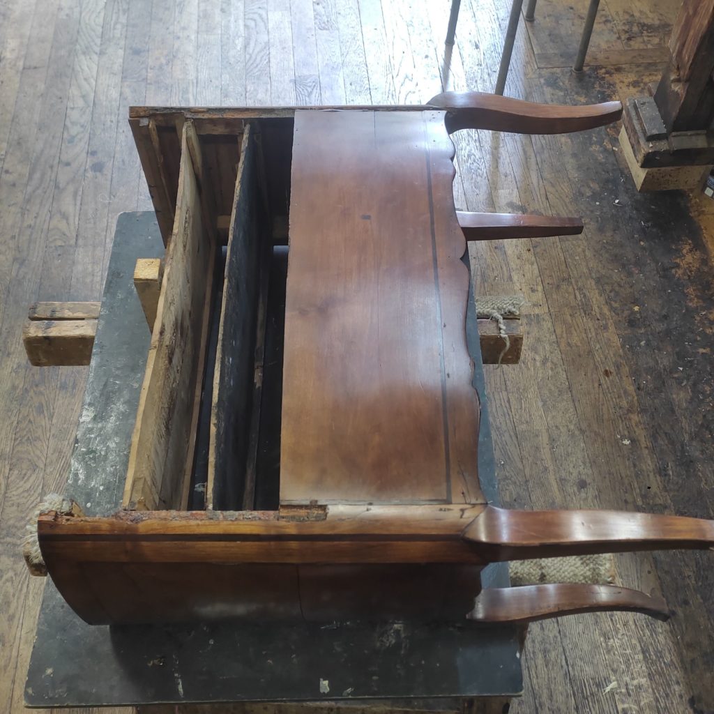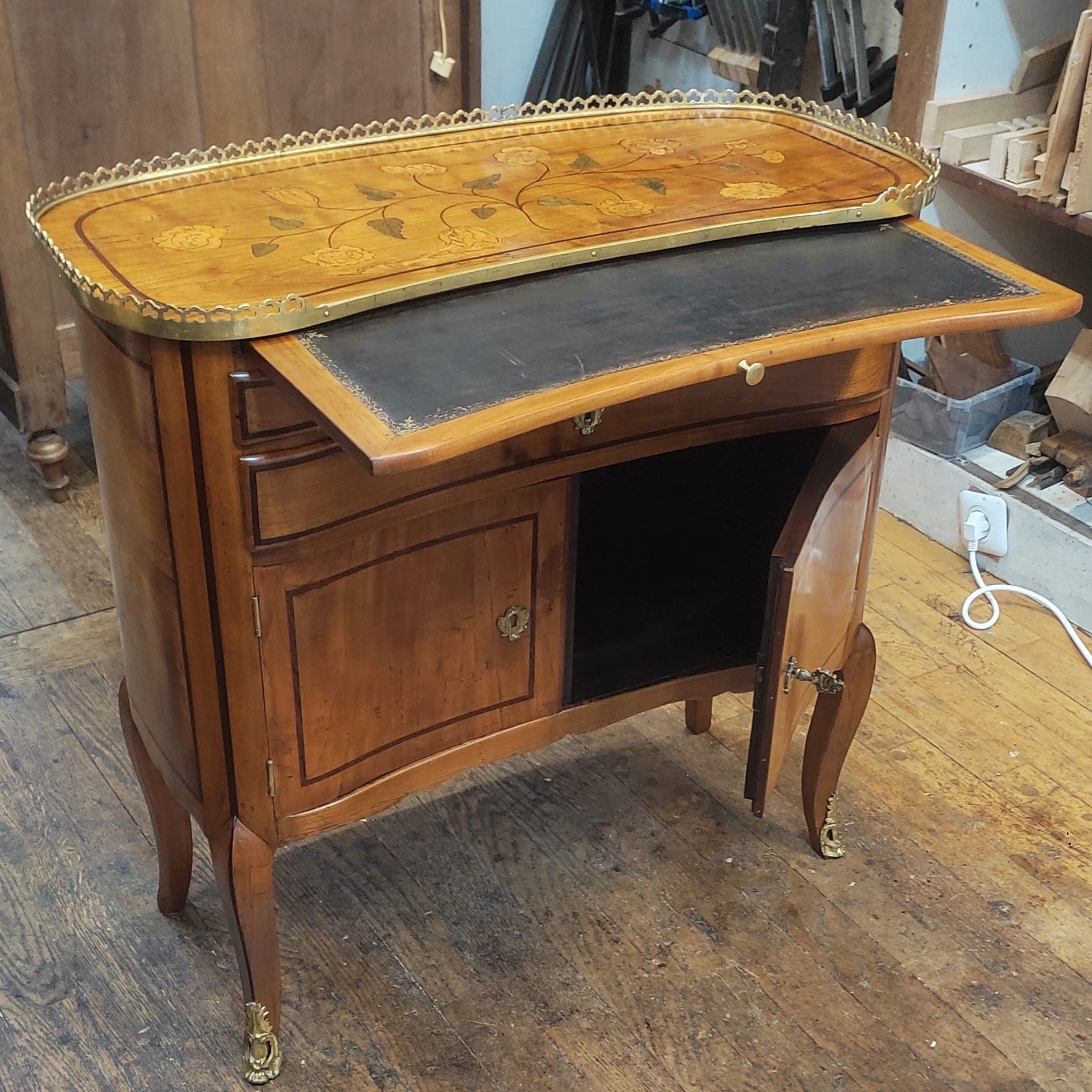 Restauration d’une table rognon formant écritoire, époque Transition